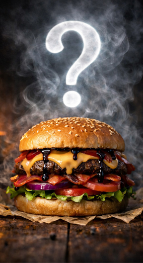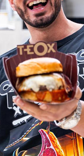 Hamburguesas potentes, fuego, actitud urbana.